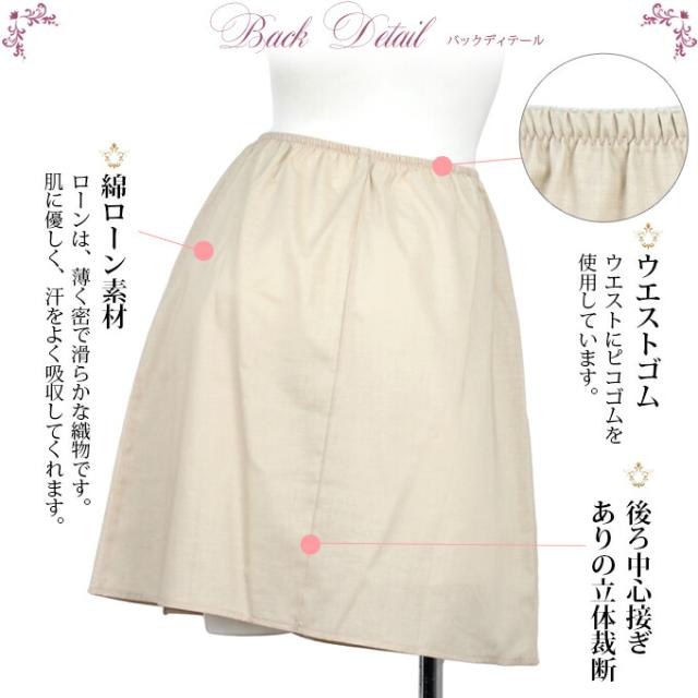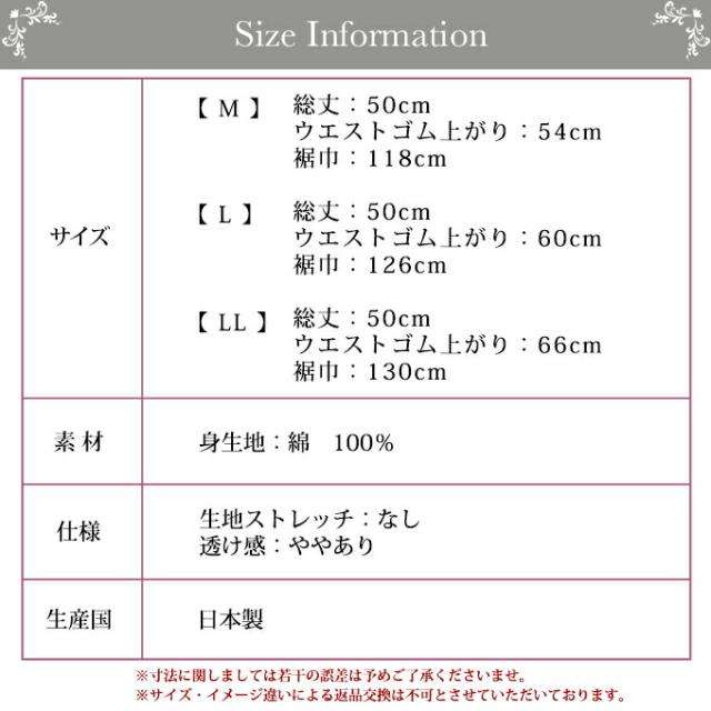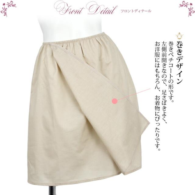 日本製 ペチコート ペチスカート 浴衣の下に着る肌着 50cm丈 巻き ペチコート 4592 スカート 下着 レディース 浴衣 着物 肌着 ロング インナー 綿100% シンプル 透け防止 大きいサイズ 透けない 下着透け対策 スカーチョ スカンツ ひざ丈 綿 履きやす 4592