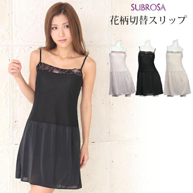胸元 花柄 切替 85cm丈 スリップ 6237 ペチコート ワンピース ランジェリー インナー スリップ レディース 女の子 女性 キャミソー 浴衣 スリップ チラ見え 防止 サテン ロング フレア 日本製 大きいサイズ 袖なし 下着 肌着 M L LL 下着透け対策 透け 6237