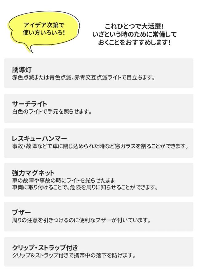 車の故障や事故の時にライトを光らせたまま車両に取り付けることで、危険を周りに知らせることが出来ます。