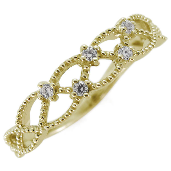 指輪 ダイヤモンド レディース 10金 ミル打ち リング レース