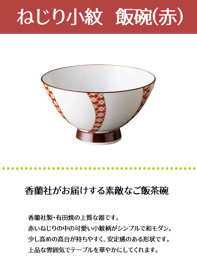 ねじり小紋 飯碗(赤) 2448-DU 香蘭社