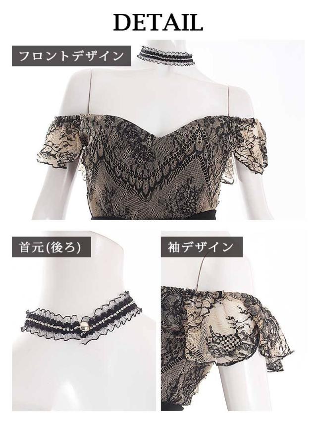 ☆キラキラ輝くビジューラインがついたチョーカーがあることで、アクセいらずで華やかな印象を与えてくれるキャバクラドレス。