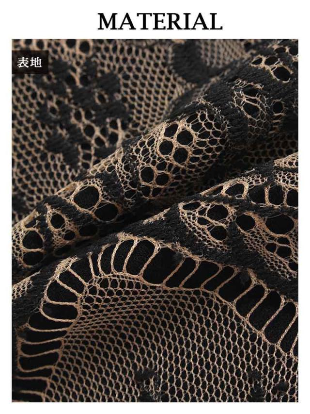 ☆高級感漂うブラックカラーの刺繍レースが上品で、裾のカッティングがめずらしいデザインになったナイトドレス。