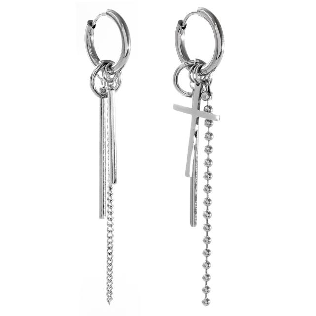 BTS 防弾少年団 ジミン jimin が着用しているデザインの韓国 韓流デザインになります。チェーン スティックピアスと チェーン クロスピアス 1個ずつの2個セットです。韓国 韓流ファッションとして人気でシンプルなデザインなのでメンズピアス、レディースピアスとしてユニセックスでお使いいただけます。韓国アイドルや芸能人が多数着用しているドロップピアスは、シーズン問わず着用頂けます。