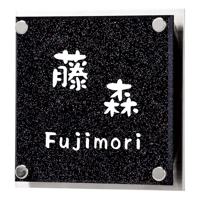 星空を想わす魅惑の輝き。光を受けると7色に輝き、見る度に違った表情を見せてくれます。思わず見とれてしまう、そんな表札です。