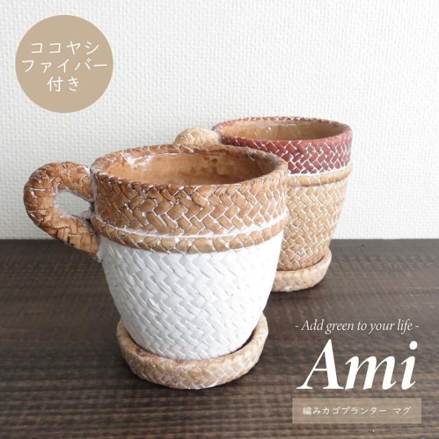 【ココヤシ付属】鉢 プランター 編みかごプランター マグ 2個入りセット ココヤシファイバー付き 受け皿 穴あり モロッコ調 インテリア
