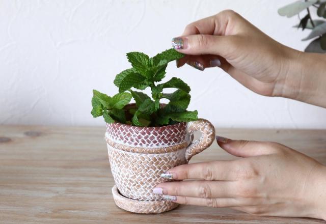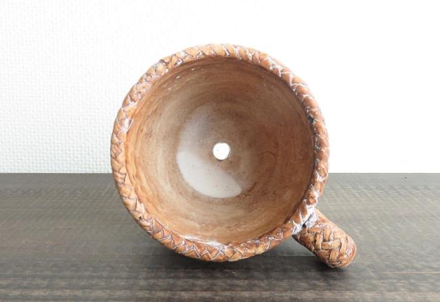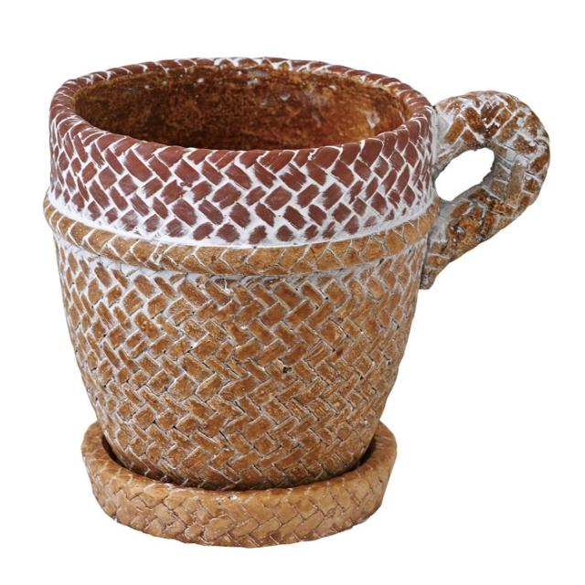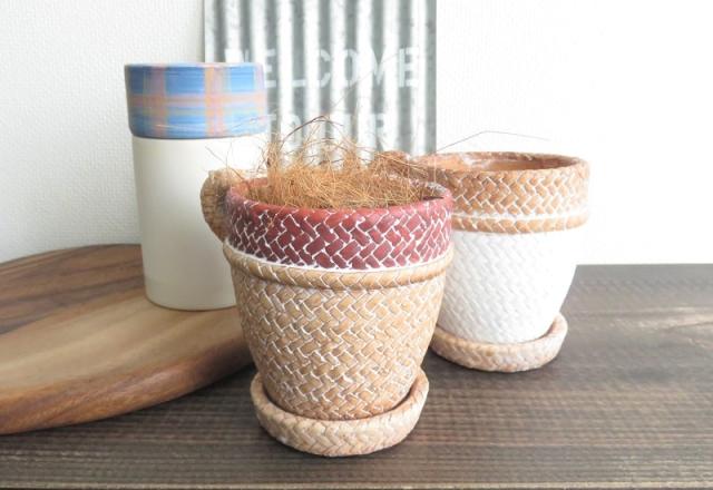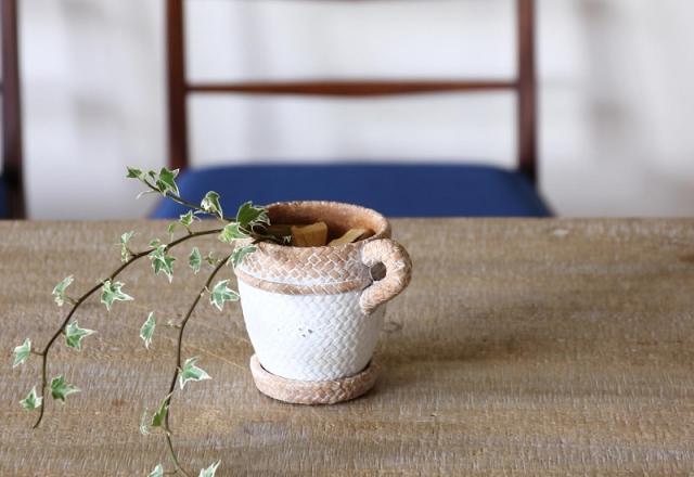 手作りで編んだような細かいディテールも表現。シンプルな色合いに存在感ある取っ手が魅力のミニサイズのプランター。モロッコ雑貨好きにはたまらない雰囲気で仕上がっています。