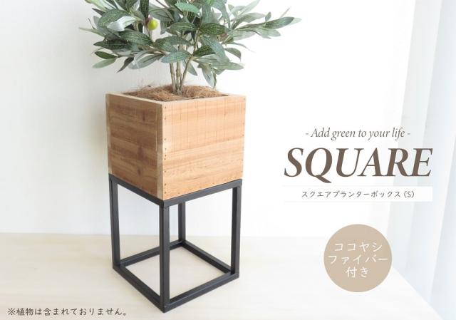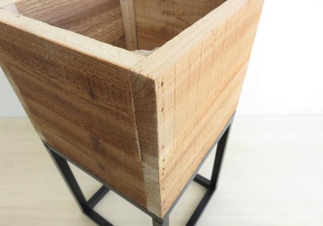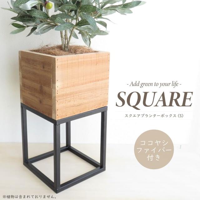 鉢カバー プランター スクエアプランター ボックススタンド Sサイズ ココヤシファイバー付き 杉 アイアン モダン おしゃれ インテリア