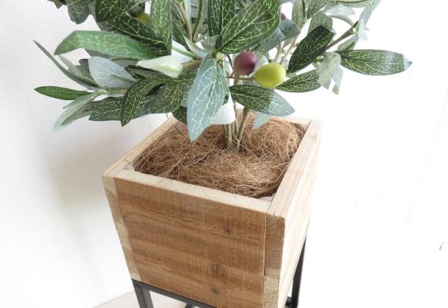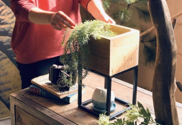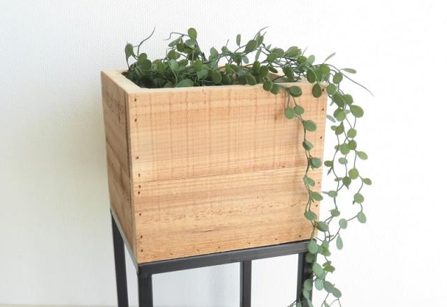 スタンドタイプの高さを活かし、ツル系植物を垂らしてみたり、高さのある一鉢を使えば存在感を放つ。同じ自然素材のボックスなので様々な植物との相性も抜群。