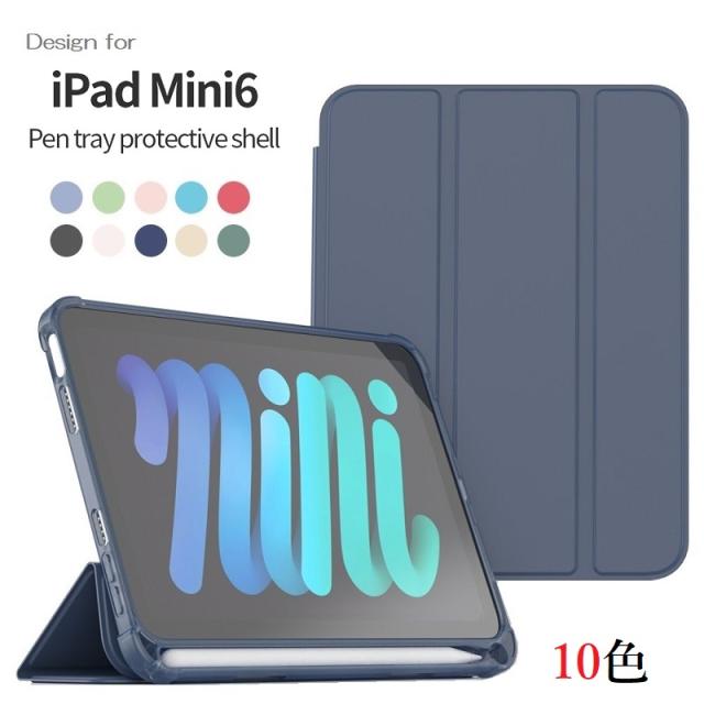 iPad mini6用 三つ折り TPU+PU連体 ソフト スマートカバー ケース オートスリープ機能 アップルペンシルホルダー付 (ブラック、 ネイビー、ブルー、グレー、グリーン、ダークグリーン、ピンク、レッド、ゴールド、ローズゴールド) 10色選択