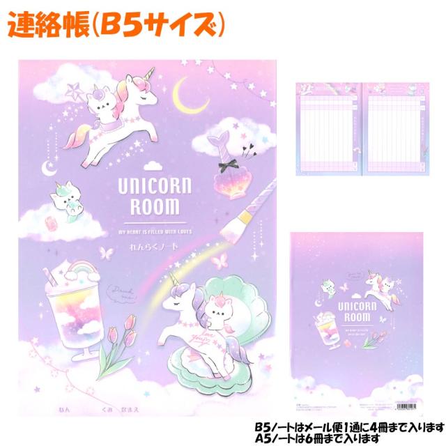 【メール便 OK】 連絡帳 連絡ノート B5 サイズ 女の子 向け ユニコーンルーム クマ クーリア おしゃれ で かわいい 文房具 の ドイブングテン