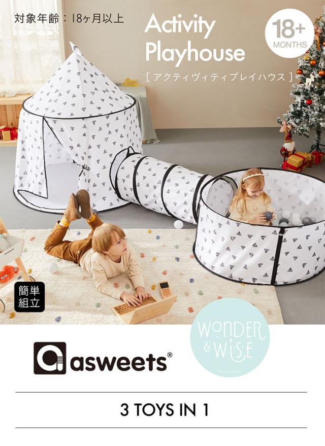 キッズテント asweets(アスウィーツ) アクティヴィティプレイハウス ティピー ボールプール トンネル おもちゃ 男の子 女の子 子ども 子供 キッズ 子供用テント 室内テント 屋内テント おしゃれ