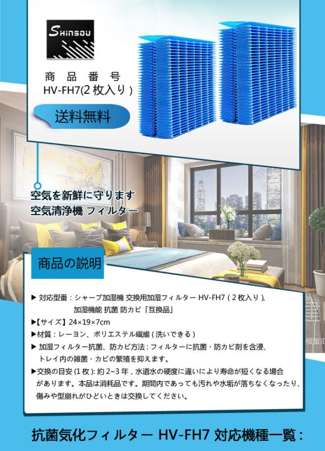 シャープ 加湿フィルター HV-FH7 加湿器 フィルター hv-fh7 気化式加湿機用 HV-H55 HV-H75 HV-J55 HV-J75 HV-L75 HV-L55 HV-H55E6 交換フィルター 互換品 2枚入り