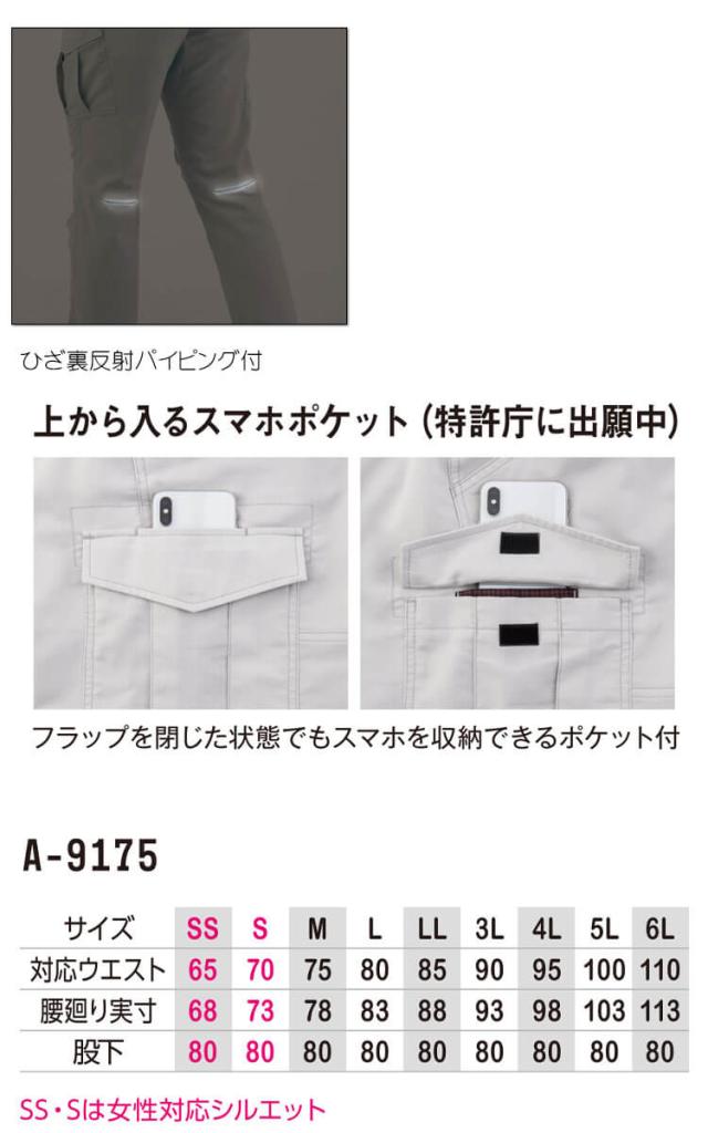 コーコス CO-COS ストレッチカーゴパンツ A-9175 作業服 秋冬 帯電防止 パンツ サイズSS〜LL