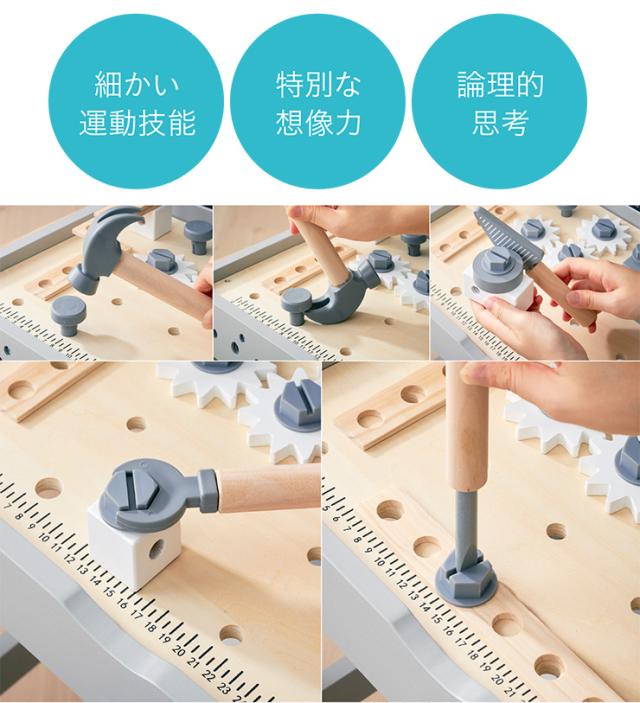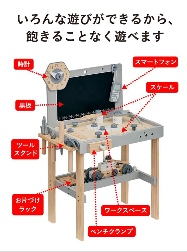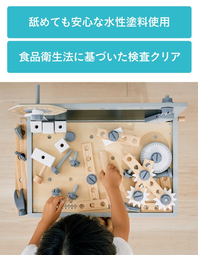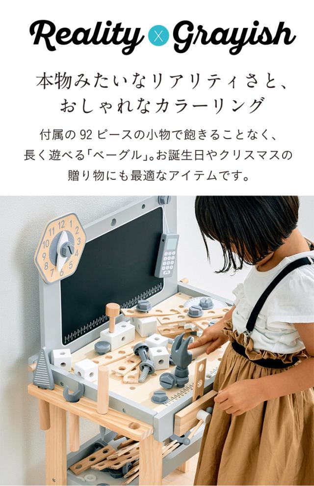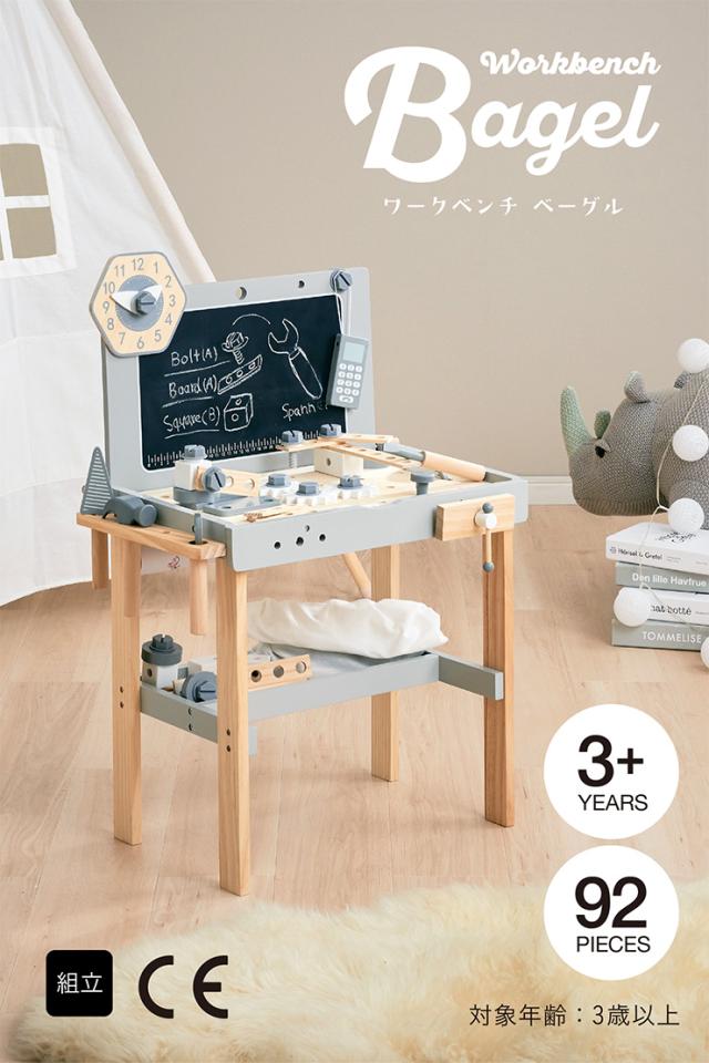 【CEマーク付き】大工さんごっこ ワークベンチ 92ピースセット Bagel(ベーグル) おままごとセット ままごとセット ごっこ遊び 知育玩具 工具セット 子供 キッズ 大工 木製 工具箱 黒板 ツールキット おもちゃ プレゼント