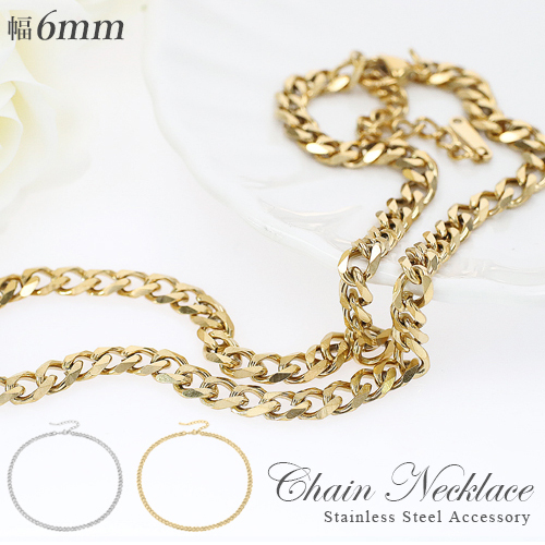 6mm 喜平チェーン ネックレス 42cm アジャスター付き アレルギーフリー カーブチェーン キヘイチェーン 2色 ステンレス シルバー ゴールド シンプル メンズ レディース 女性 贈り物