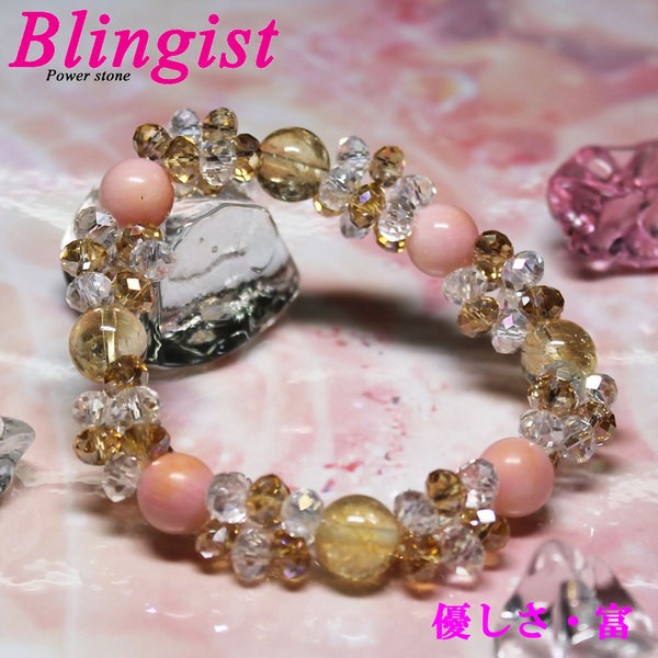 【定形外郵便対応可能】Blingistピンクサンゴ・シトリン ブレスレット/数珠 天然石 パワーストーン(レディース)RGB-2-05-616