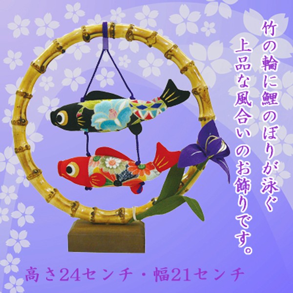 竹の輪の中に鯉のぼりが泳ぐ上品な風合いのお飾りです。