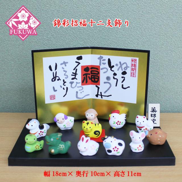 干支 置物 午 馬(錦彩招福十二支飾り)Y99-544干支の置物 午年 馬年 薬師窯作