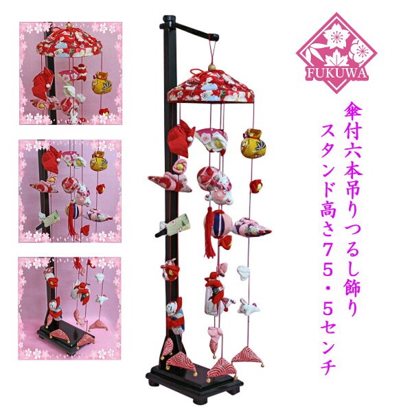 つるし雛 つるし飾り 吊飾りあかつき五連飾り木製飾り台付 M156096-520