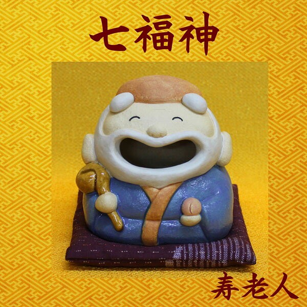 七福神 置物 日本製陶器 常滑焼【うぉっほっほ寿老人(座布団付き)O-277-1205】福の神 商売繁 五穀豊穣