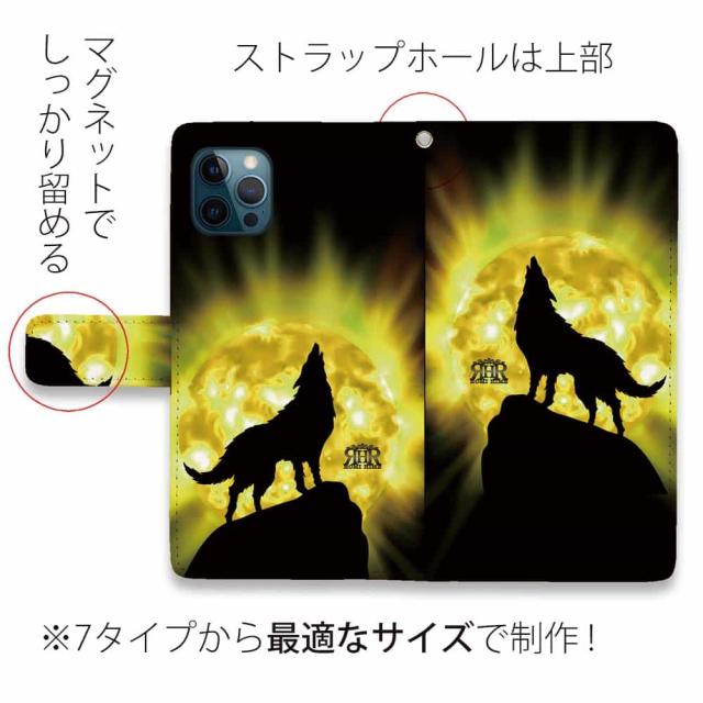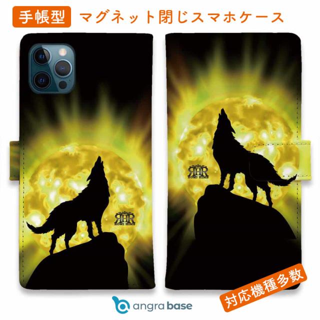 スマホケース 手帳型 カード収納 マグネット iPhone17 Pro Max iPhone Air iPhone16e iPhone16 Pro Max 16 Plus 15 Pro Max Xperia 10 VII Galaxy AQUOS ARROWS Pixel10 XL ROMI HIME 狼 イエロー 月