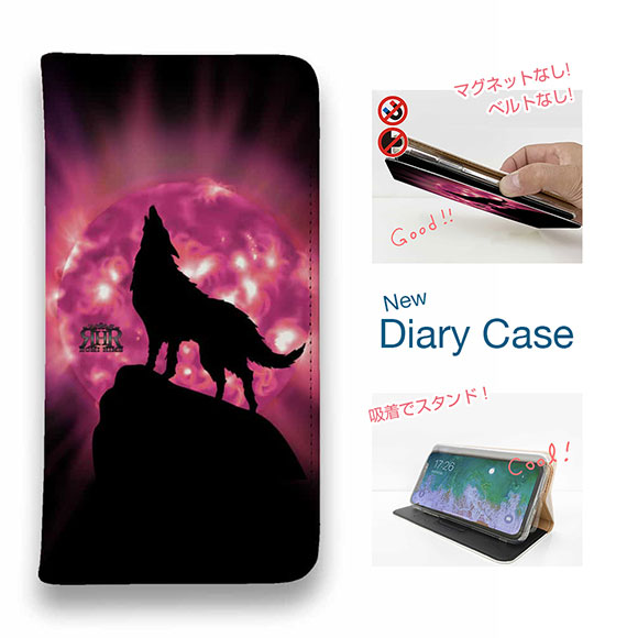 スマホケース 手帳型 ベルトなし iPhone17 Pro Max iPhone Air iPhone16e Pro Max 16 Plus 15 Pro Max 14 Plus Xperia 10 VII Galaxy AQUOS Pixel10 Pro XL ROMI HIME 狼 ピンク 月
