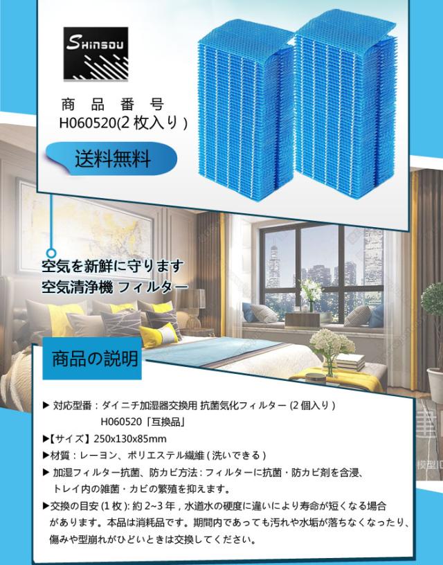H060520 ダイニチ加湿器 抗菌気化フィルター h060520 加湿機 HD-LX1019 HD-LX1020 HD-LX1219 HD-LX1220交換用 加湿 フィルター 互換品 2枚入り 全て日本国内発送