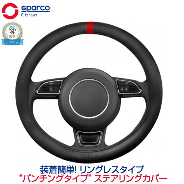 ハンドルカバー 軽自動車 Sサイズ おしゃれ 普通車 スパルコ コルサ 簡単取付 薄型 パンチングタイプ SparcoCORSA リングレス ステアリングカバー パンチングタイプ SPS900BKR_J