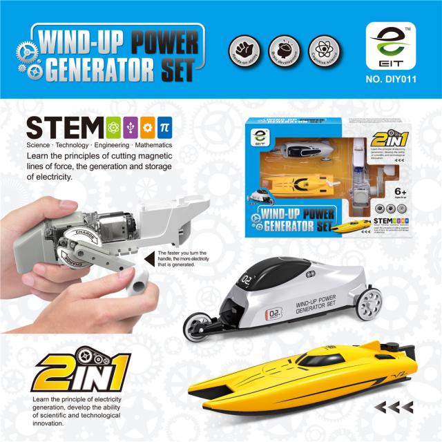 Subotech DIY011ハンドクランクボート車ハンドウインチ発電機セット子供車のおもちゃ子供教育プレイ