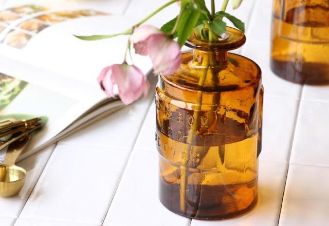 フラワーベースの口元は内寸で約2cm、深さは15.5cmなのでお気に入りの一輪飾りなどに。身近に置いて日常使いにピッタリ♪ |