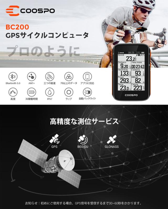 CooSpo BC200 サイクルコンピュータ GPS サイコン 自転車スピードメーター 大容量バッテリー 36時間連続駆動 ANT+ Bluetooth5.0 ハンディワイヤレス対応 サイクリングスピードとケイデンスセンサー接続 IP67級防水防塵 日本語取り扱い説明書【正規品】