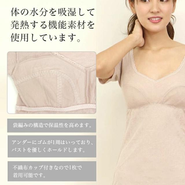 インナー レディース 下着 秋 冬 カップ付き 半袖 SUBROSA a923sr a952sr 吸湿 発熱 ブラキャミ ブラ付き ブラトップ 保温 暖か 暖かい あったか 肌着 無地 ブラジャー スリップ (04961)