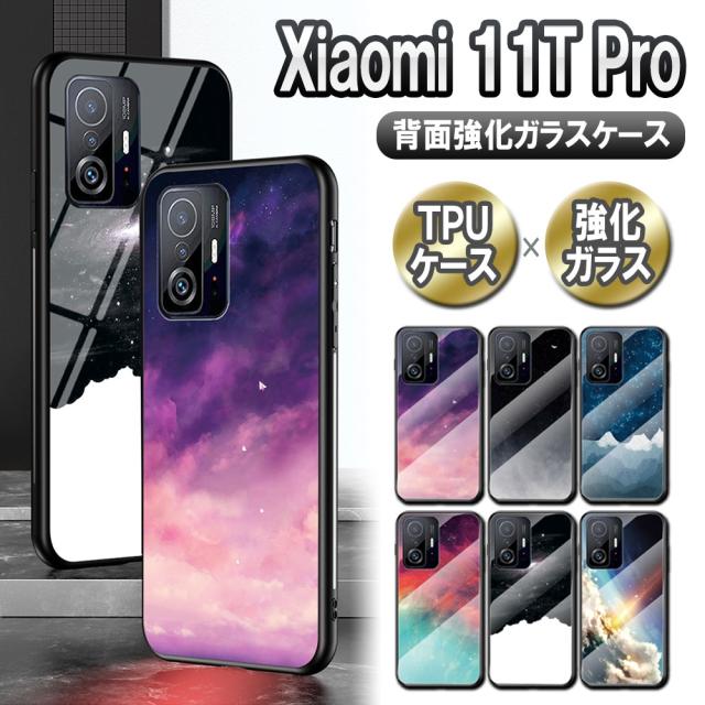 【送料無料】Xiaomi Mi 11T/ Xiaomi 11T Pro シャオミ ミー11T プロ ガラスケース 背面ガラス TPUケース 宇宙銀河調 星空柄 耐衝撃 背面保護 かっこいい おしゃれ