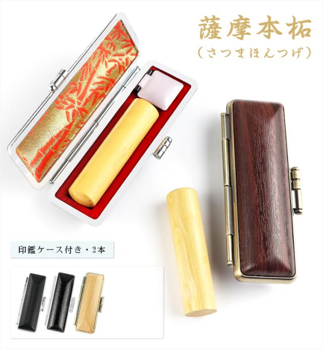 薩摩本柘 ケース付き 2本セット 10.5〜18.0mm 高品質 激安 プレゼント 実印 銀行印 認印 印鑑 ハンコ あかね 木質