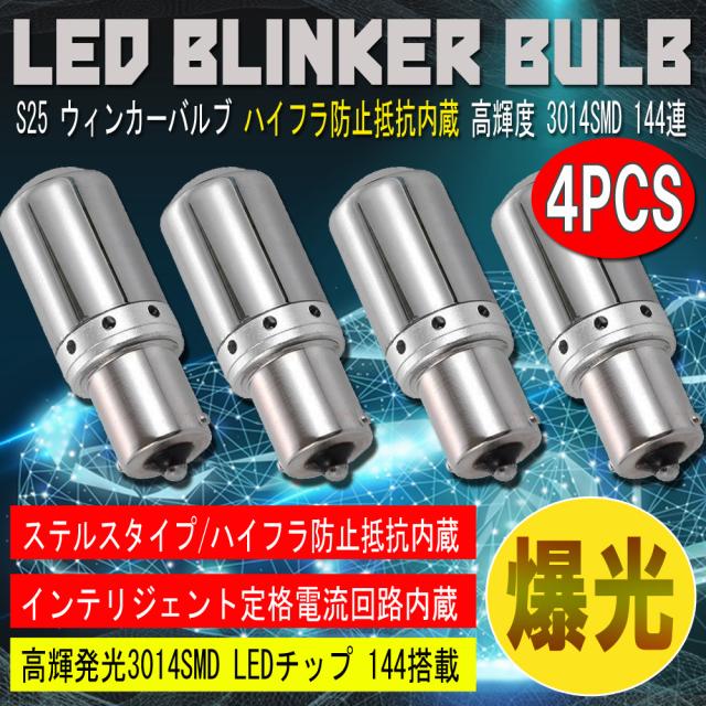 S25 LED ウィンカーバルブ ステルス 4個セット 3014SMD 144連 爆光 ハイフラ防止抵抗内蔵