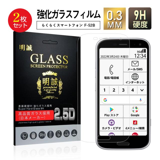 【2枚セット】らくらくスマートフォン F-52B 強化ガラス保護フィルム 2.5D ガラスフィルム 画面保護フィルム スクリーン保護フィルム