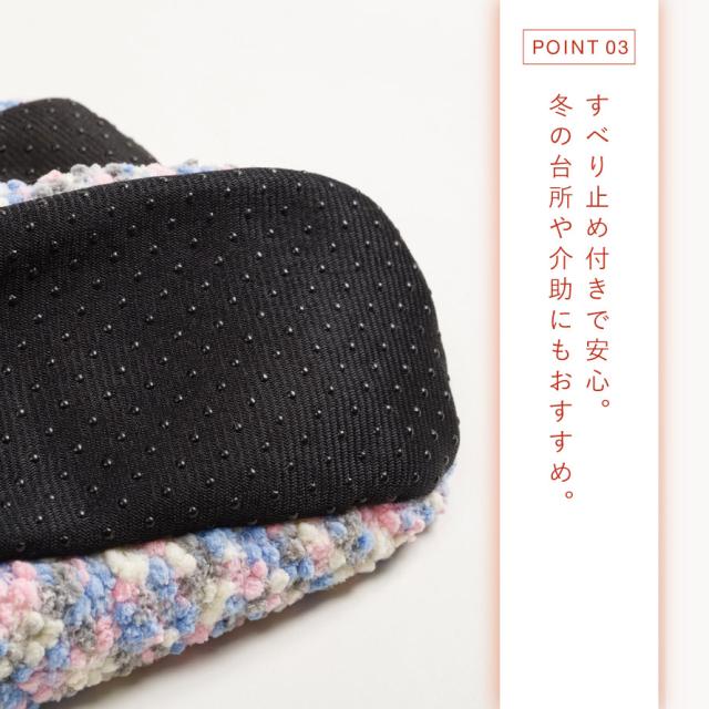 すべり止め付きなので、冬の台所や介助などにもおすすめ。
