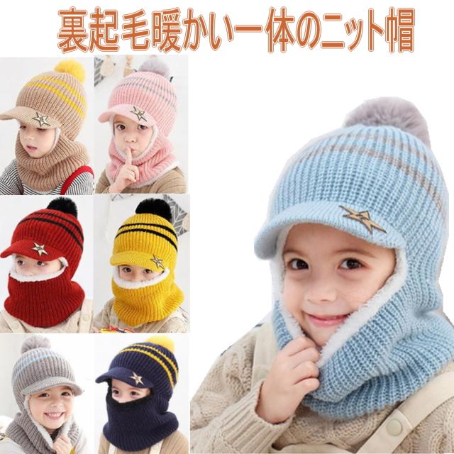 超防寒!零下10℃も大丈夫!送料無料! ベビー キッズ 子供 一体ネックウォーマー ニット帽 耳あて ボンボン 秋冬 ベビー 帽子 防寒 耳付き ニット帽 子供用 可愛い ふわふわ 暖かい ニットキャップ ボア 男の子 女の子 冬用ハット おしゃれ 通園 クリスマス 新年 プレゼント