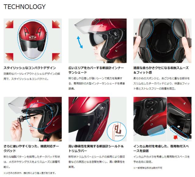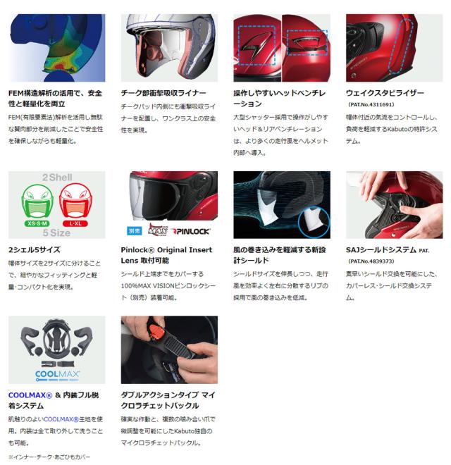 ・チークパッド内側に衝撃吸収ライナーを配し、ワンクラス上の安全性を実現。