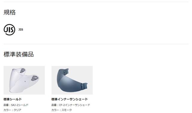 ◇標準シールド/カラー:SAJ-2シールド(クリア)