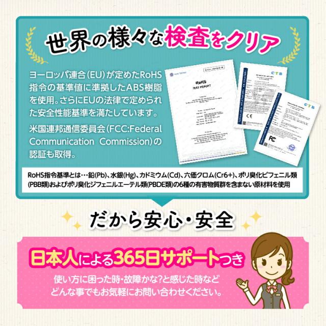さらに、日本語の説明書兼保証書も付属しているので、初めて使う飼い主さんでもわかりやすい!また、RoHSやFCCなどの世界基準の安全検査をクリアしているので、愛犬愛猫にも安心してご使用いただけます。