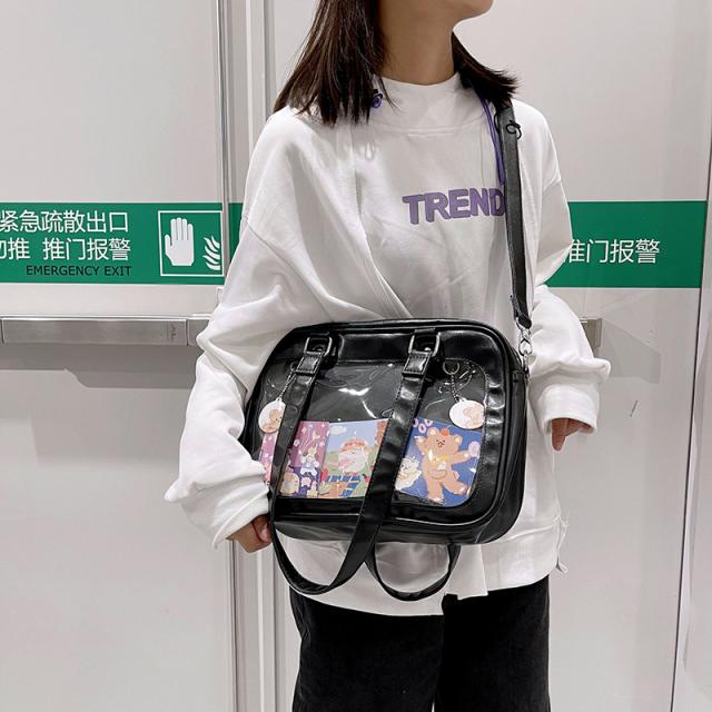 痛バッグ 痛バ ショルダーバッグ クリア レディース トート 痛バック かわいい かばん 見せバッグ 推し アピール 同担拒否 オタク 缶バッチ 缶バッジ 収納 小さめ 黒 イベント アニメ 透明 ビニール