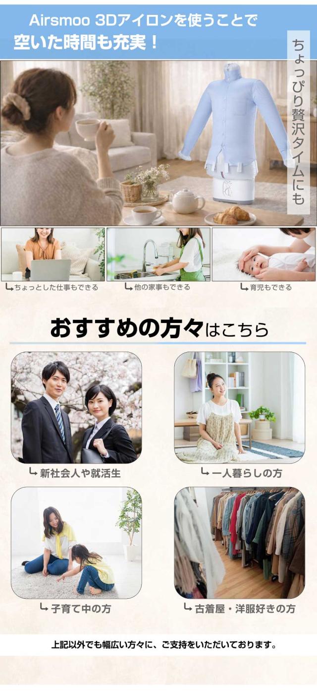 | 型番 | Airsmoo-04B (衣類乾燥機 3Dアイロン) |