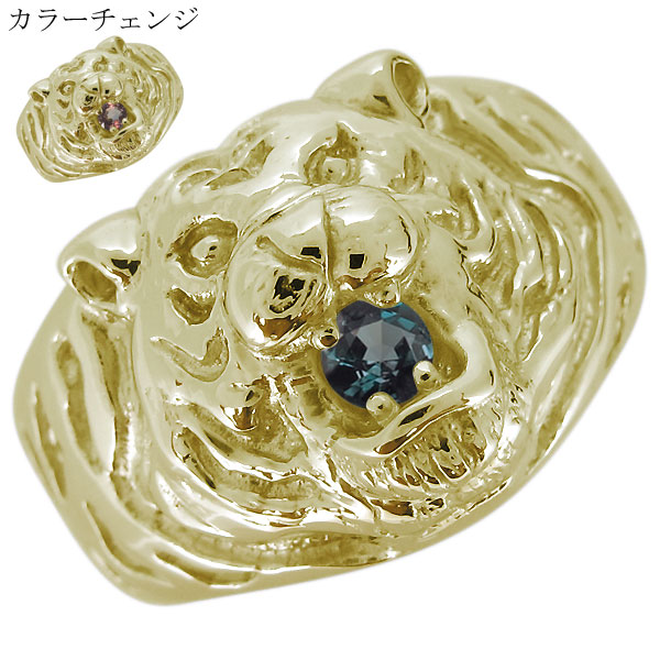 虎 タイガー 指輪 18金 リング メンズ 天然石 アレキサンドライト K18