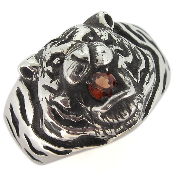 シルバーリング 指輪 メンズ 虎 タイガー ガーネット メンズリング