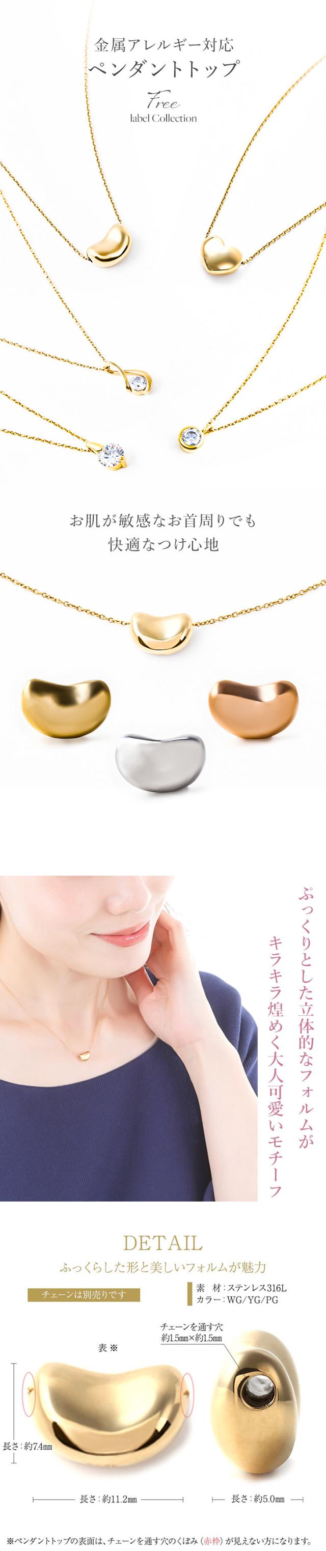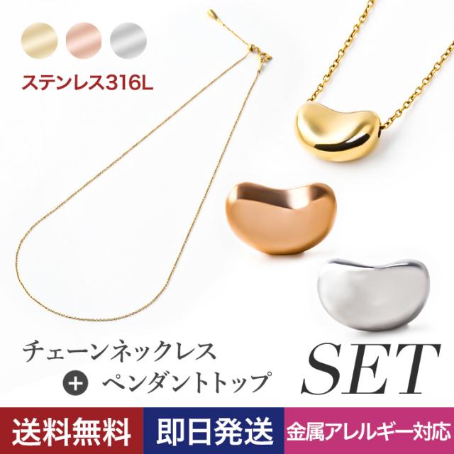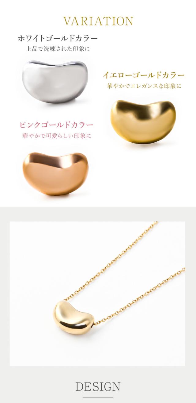 ネックレス レディース サージカルステンレス ビーン 医療用 ステンレス 316L 金属アレルギー ペンダントトップ ペンダント チェーン トップ ゴールド ピンクゴールド ビーンネックレス シンプル ジュエリー アクセサリー 誕生日 クリスマス プレゼント 女性 彼女