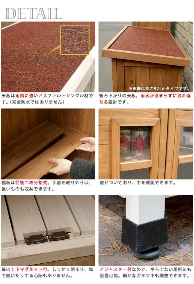 | 説明 | 見せたくないものぜ〜んぶ隠します ベランダ薄型収納庫 置き場所に困るアレやコレ・・・ 生活感を一掃します! ベランダやバルコニーなど、せまい場所にも違和感なく馴染む、ナチュラルな天然木製の薄型収納庫です。 ガーデニング用品や、お掃除グッズなどの収納におすすめです。 |
