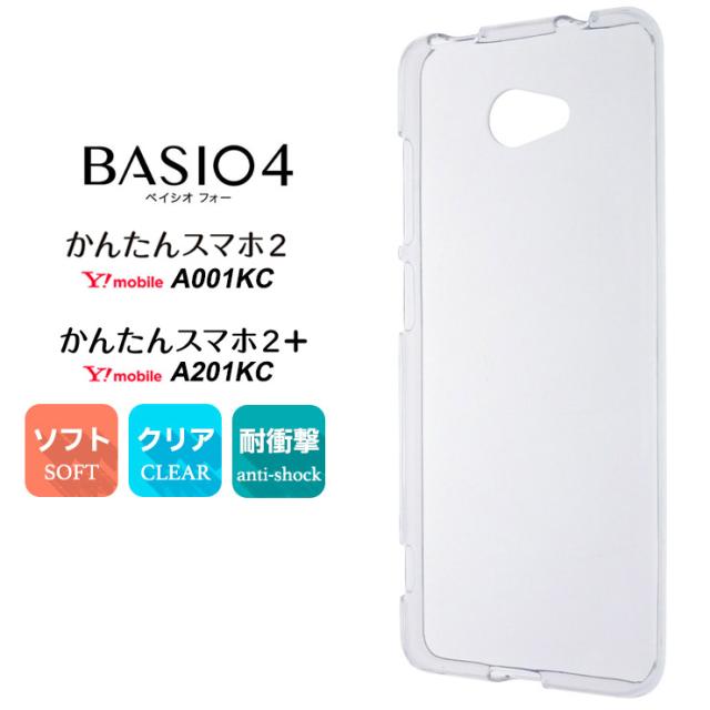 BASIO4 KYV47 / かんたんスマホ2 A001KC / かんたんスマホ2+ A201KC ソフトケース カバー TPU クリア ケース 透明 au UQmobile Y!mobile