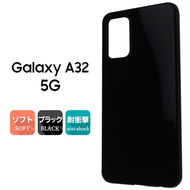 Galaxy A32 5G ソフトケース カバー TPU ブラック ケース 透明 無地 シンプル 全面 SCG08 au ギャラクシー エーサーティーツー ファイブジー 衝撃 吸収 指紋防止 薄型 軽量 ストラップホール 素材 手帳用